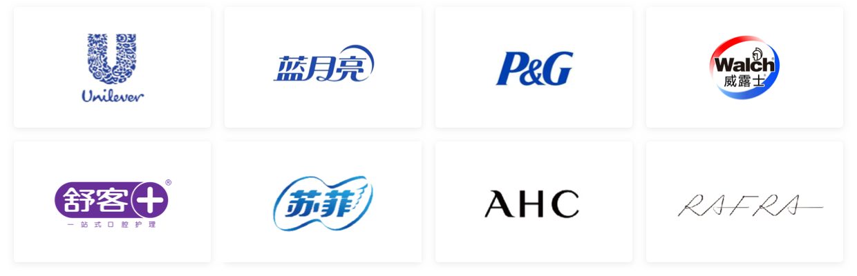 業(yè)務(wù)范圍覆蓋衣物護(hù)理、個(gè)人護(hù)理、家具護(hù)理、化妝品、口腔護(hù)理等細(xì)分行業(yè)。目前已經(jīng)合作的品牌包括寶潔、藍(lán)月亮、威露士、拜耳等。